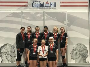 It was an amazing weekend for the 14s Pgh Revolution team at the Capitol Hill Classic. The girls persevered through metro stations, early wake up times, late nights, easy to play teams, difficult teams, trying to find the court in the sea of hundreds, team dinners, bedazzled Volleyball Mom shirts, and ultimately the toll that playing hard for three days can take on one’s mind, body and spirit. The girls participated in the 14 Patriot Division and ended with a 8-2 record (16-6), earning their seat in the finals. After a hard fought battle the girls ended up winning Second Place in the Gold Bracket. All the girls had an outstanding weekend with Makayla Roy earning best setter award.